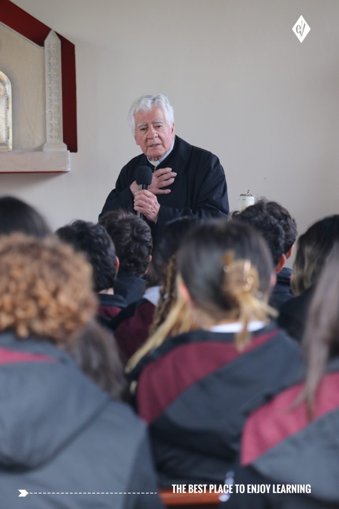 La ceremonia se realizó en la capilla del colegio, un espacio emblemático que representa la espiritualidad, la reflexión y los valores que acompañan la formación de nuestros estudiantes desde preescolar hasta bachillerato. Este escenario reforzó el mensaje central del encuentro: ser ejemplo desde la fe, el respeto y la coherencia.